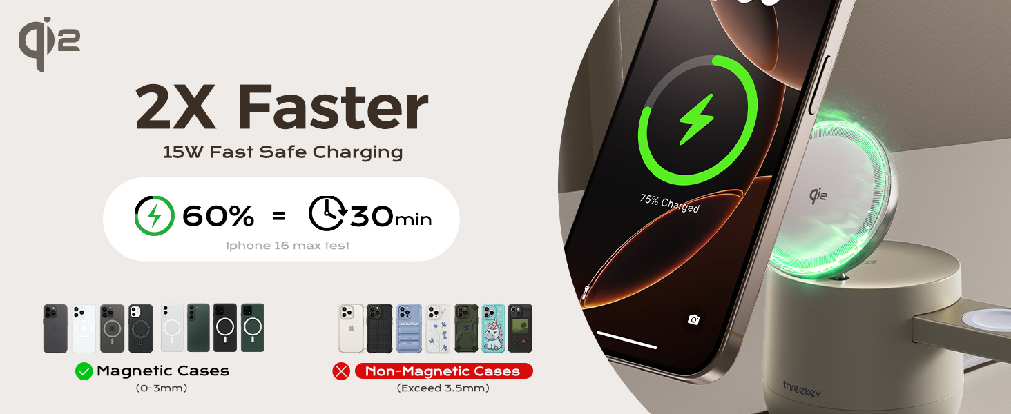 This wireless charger is designed exclusively for iPhones that support magnetic wireless charging, starting with iPhone 12 and later models. Cases over 2.5 mm thick or that are non-magnetic may reduce charging efficiency and are not recommended.